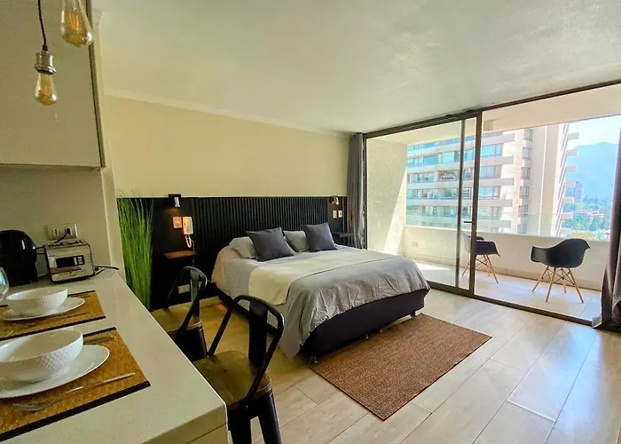 O Moderno E Iluminado Apartamento está equipado com cozinha totalmente equipada. A paragem Cerro Colorado / Manquehue Norte pode ser encontrado a alguns minutos deste apartamento.